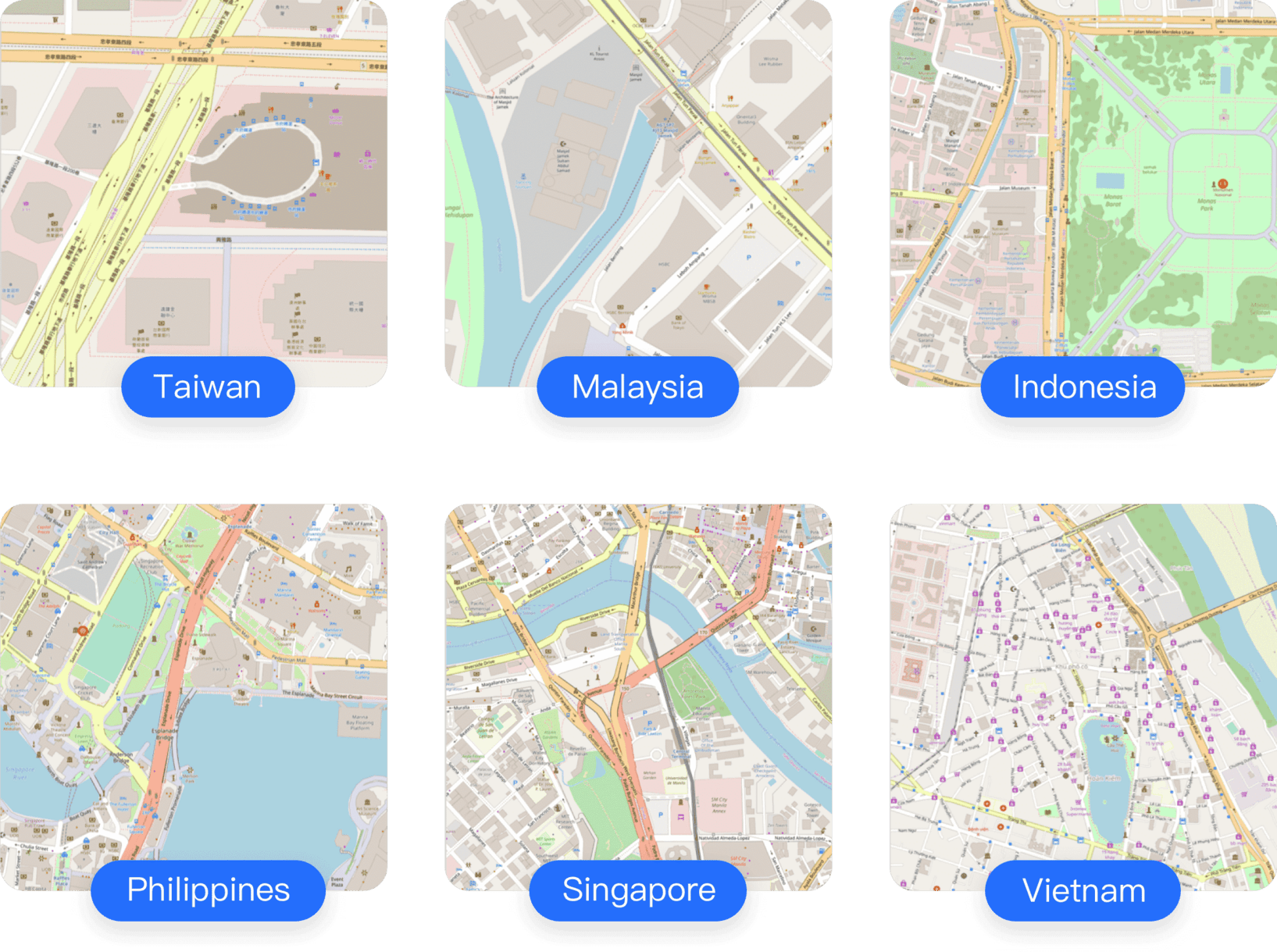 AIR® adopts OSM data source. OpenStreetMap (OSM) is a collaborative project to create a free editable map of the world. There are over 5.3 millions mappers registered on OSM globally and keep map source up-to-date.